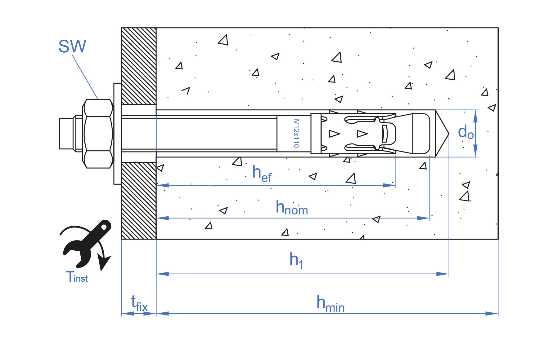 Anclajes metálicos MT | Anclaje macho para cargas altas en hormigón fisurado y no fisurado