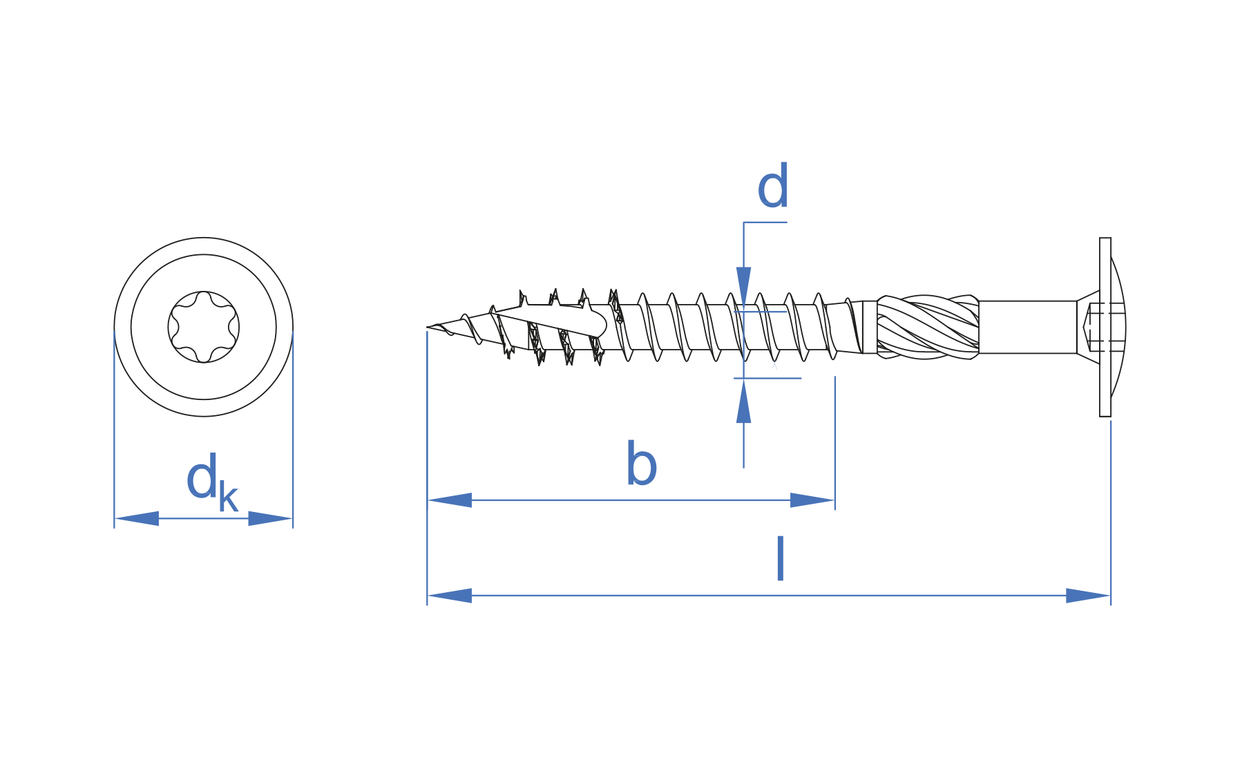 TEC-BT [CP] Tirafondo de alto rendimiento. Cabeza ancha bicromatado. Huella TX