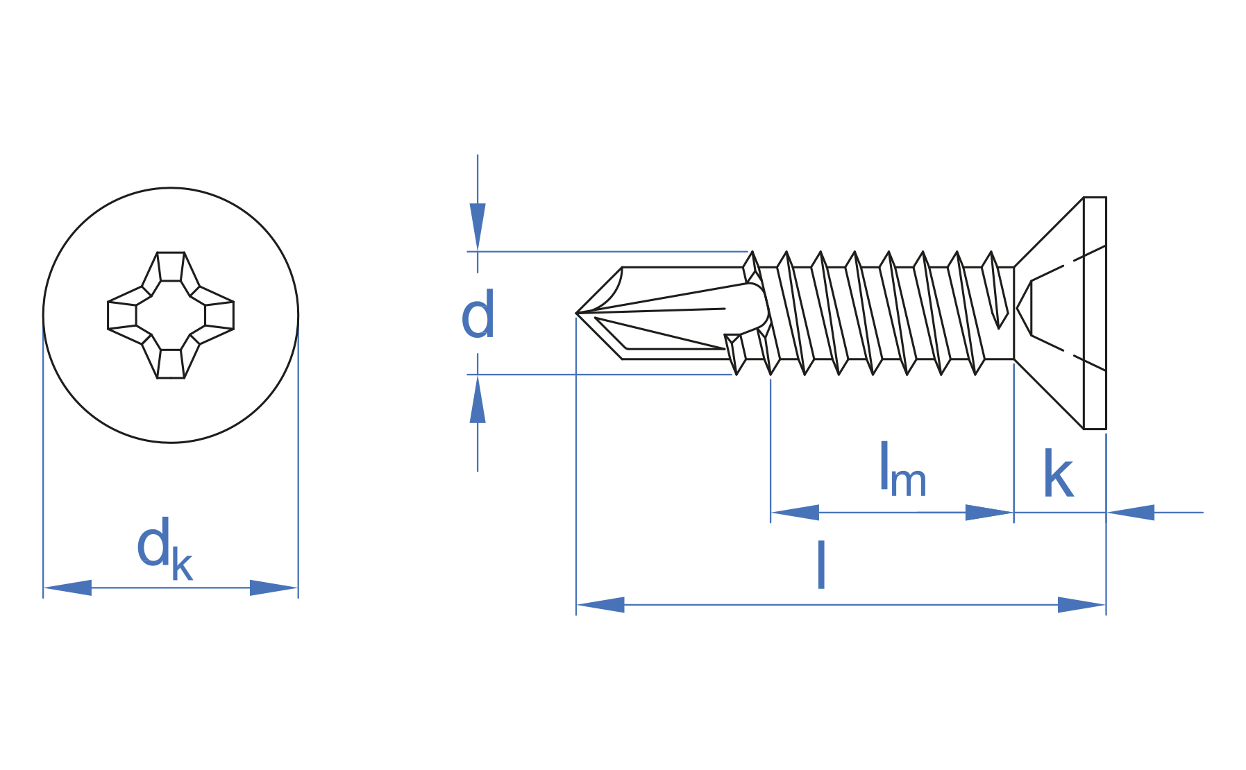DIN-7504-P HP N [CP] Tornillo autotaladrante con cabeza avellanada. Zincado negro. Huella PH