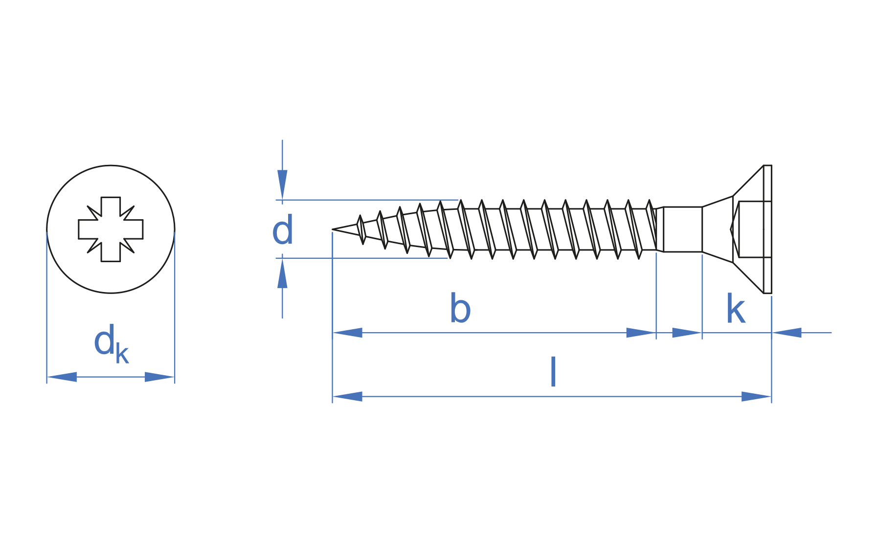 Medida: 3,5 x 30 Nº Huella: PZ2 L: 30 Llave de instalación: PZ2 Espesor máx. a fijar: 22 Ø Cabeza: 6.845 Espesor cabeza: 3.6 Longitud rosca total: 26.4 M (”): 3,5 M x L: 3,5 x 30