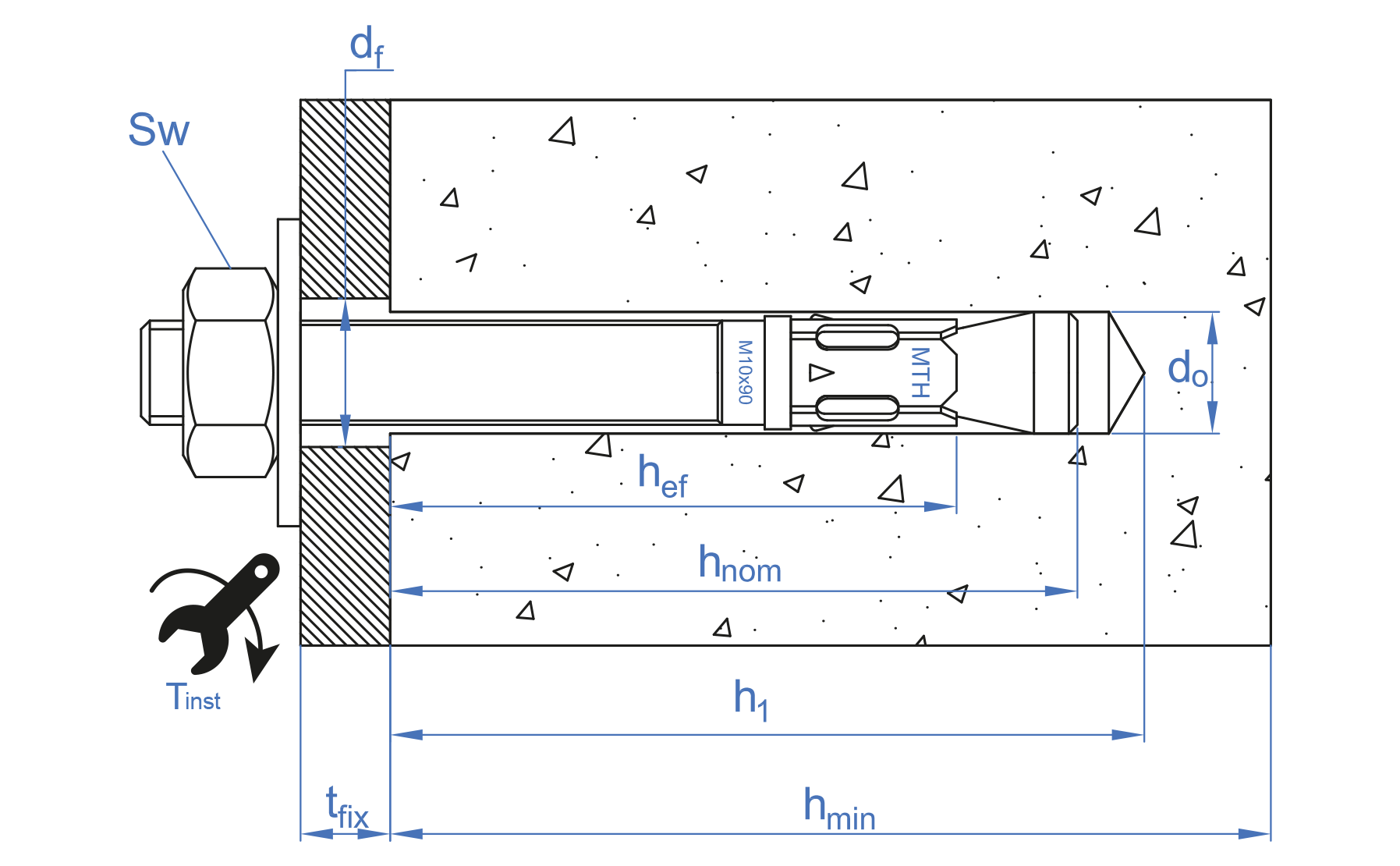 Anclajes metálicos MT | Anclaje macho para cargas altas en hormigón fisurado y no fisurado