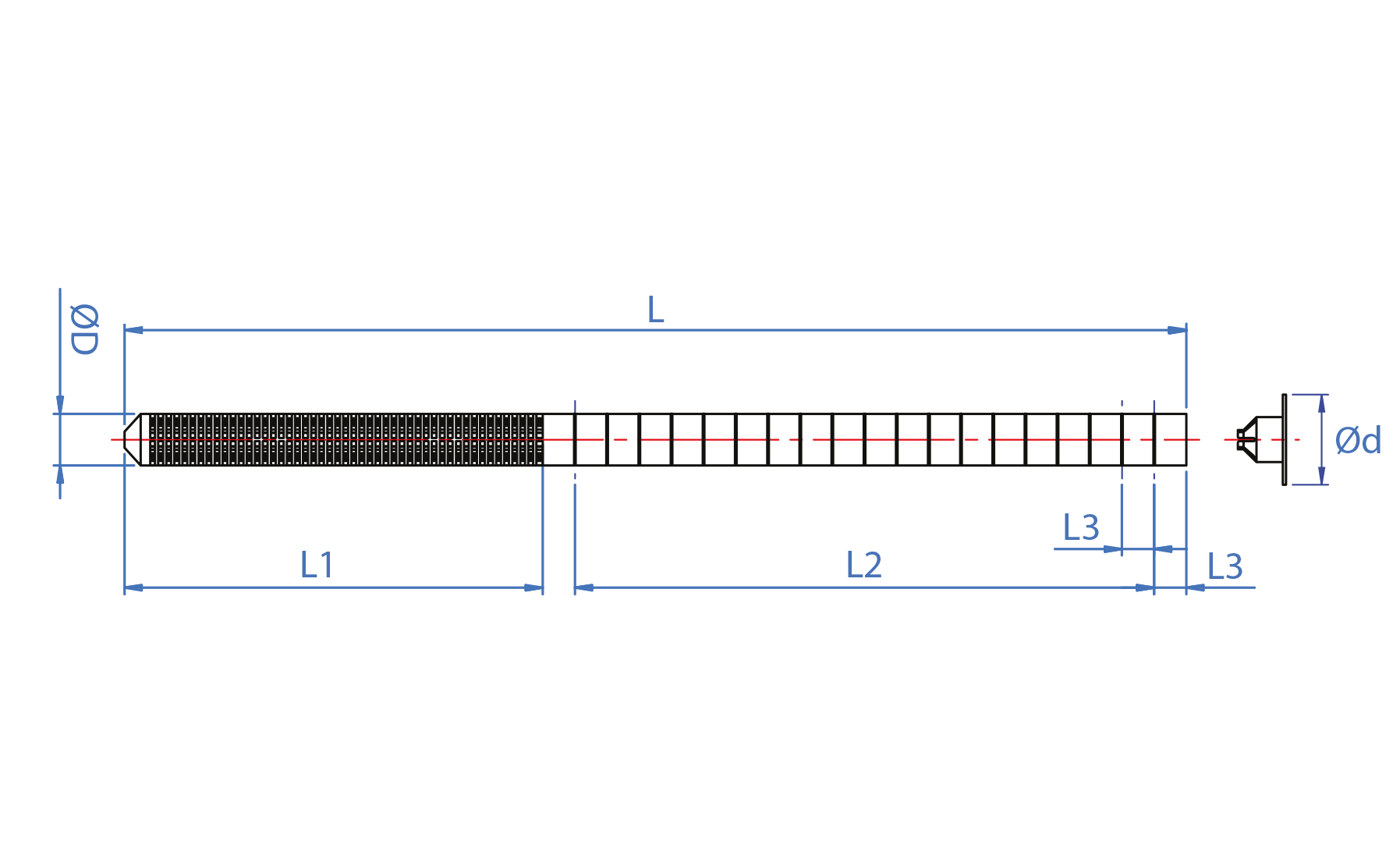 MO-TL [CP] Accesorios para fijaciones químicas. Tamiz largo recortable para fijación en cubierta teja + rasillón
