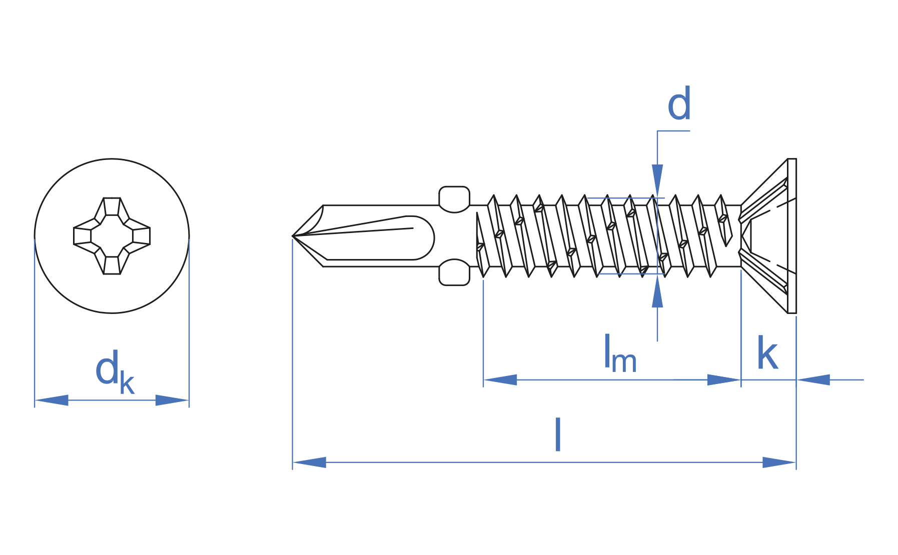 Medida: 5,5 x 45 Nº Huella: PH2 L: 45 Capacidad de taladrado: 1,75 - 5,00 Llave de instalación: PH2 Espesor máx. a fijar: 26 Ø Cabeza: 10.8 Espesor cabeza: 4.27 M (”): 5.5 M x L: 5,5 x 45