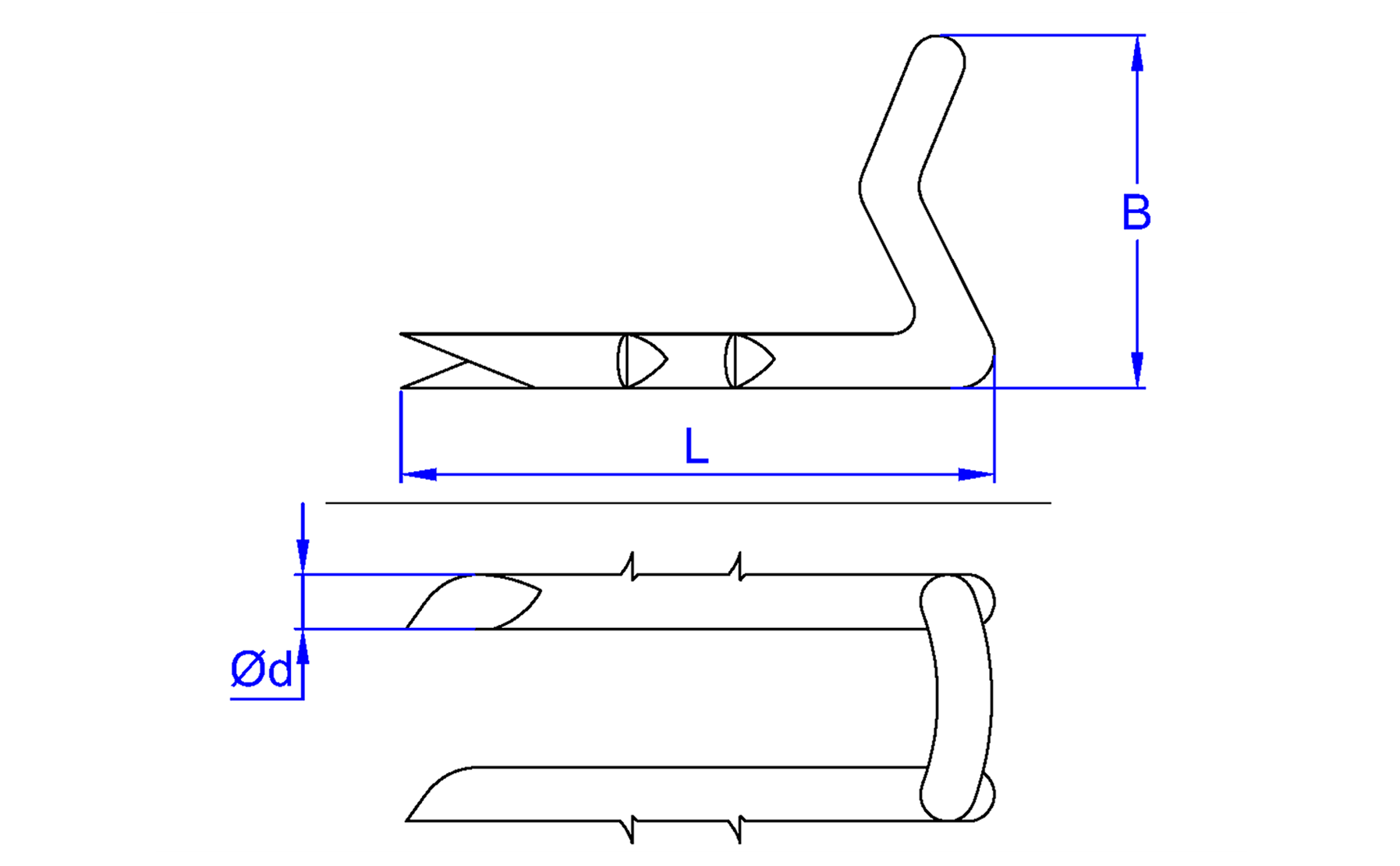 GM-AV [CP] Grampillón arponado para anclado de mallas y alambres en postes de madera. En forma de "L" para líneas móviles