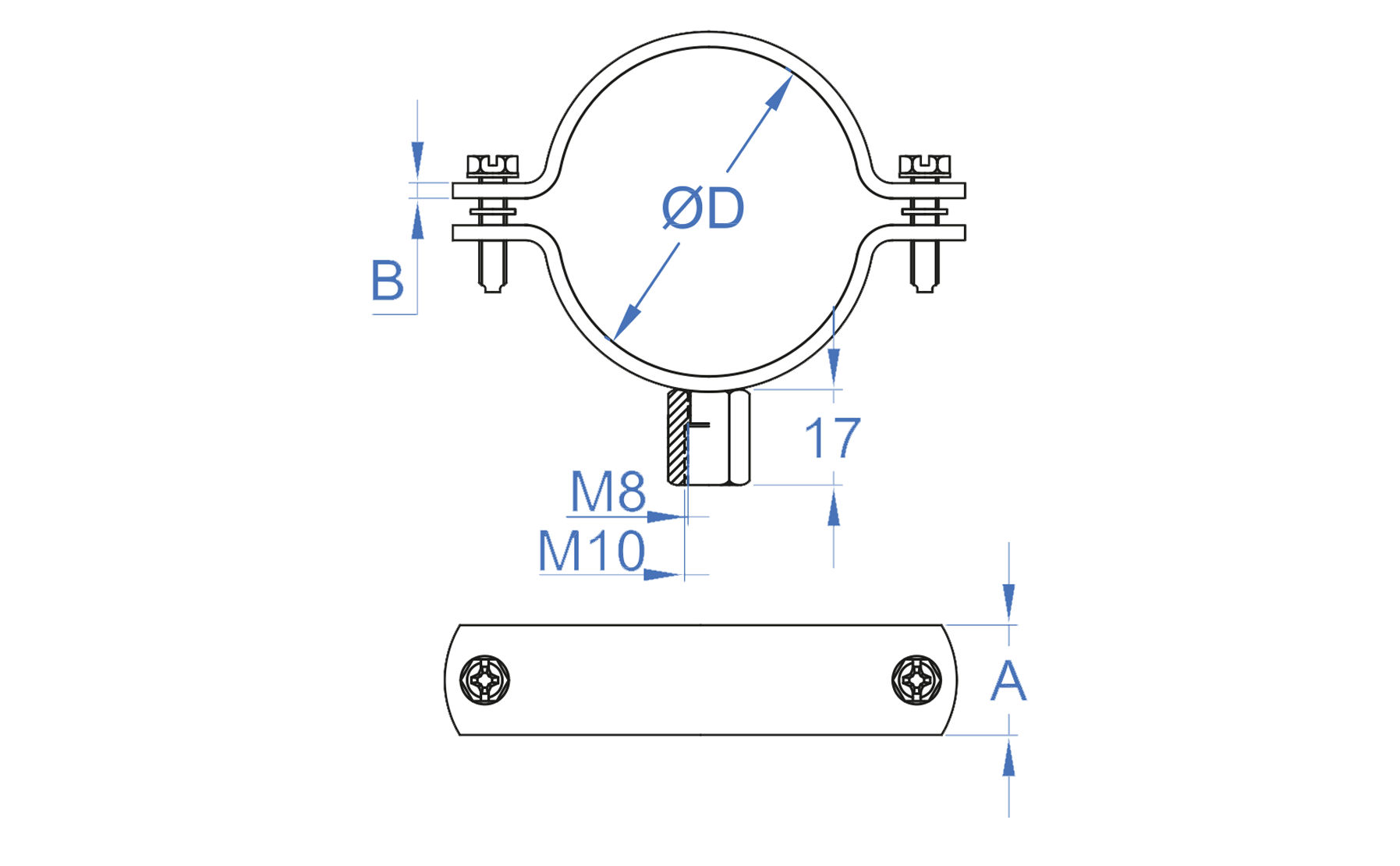 AB-RE A2 [CP] Abrazadera reforzada M8 + M10. Inoxidable A2