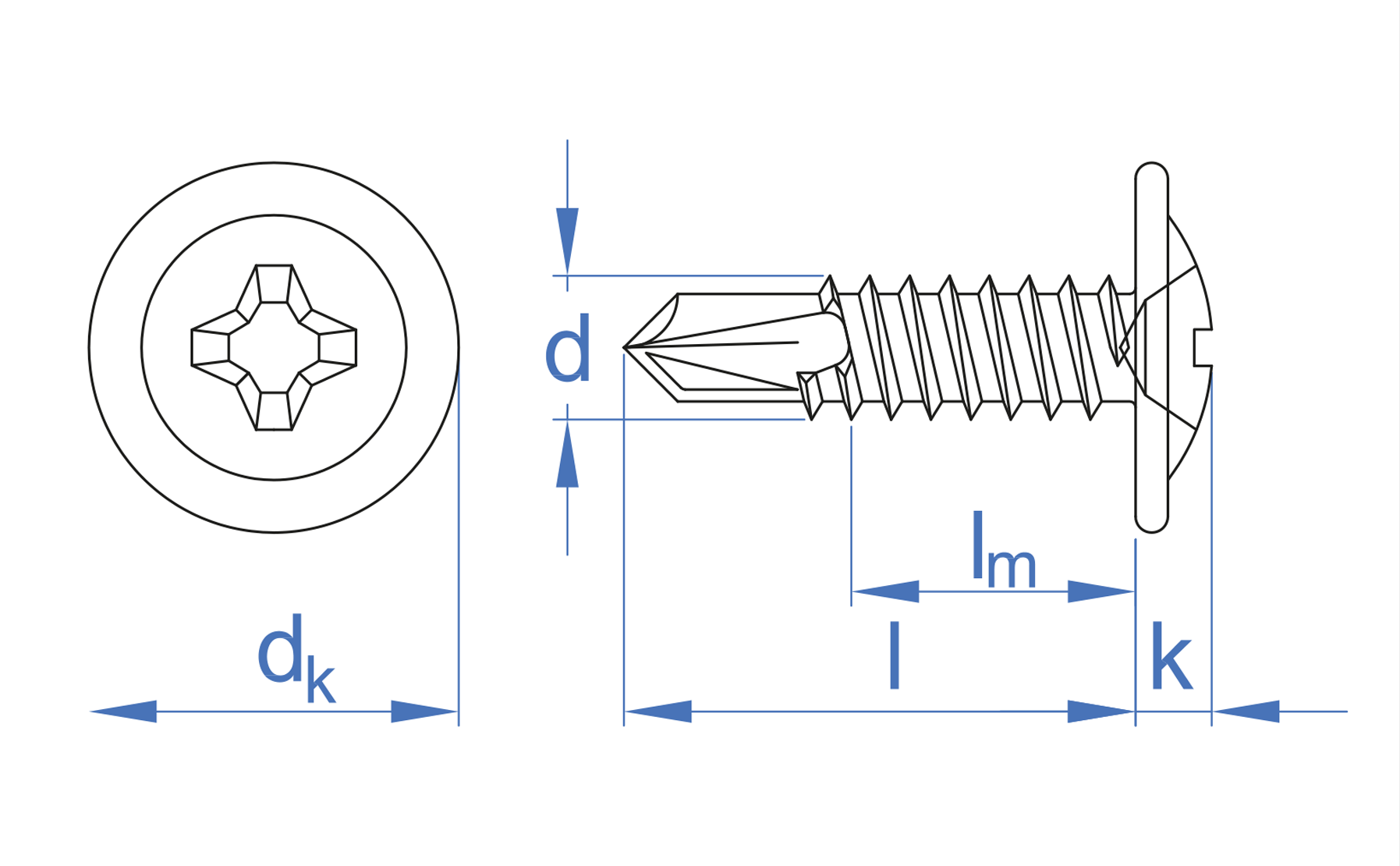 TAEN [CP] Tornillo autotaladrante de cabeza alomada baja y arandela estampada. Zincado negro. Huella PH