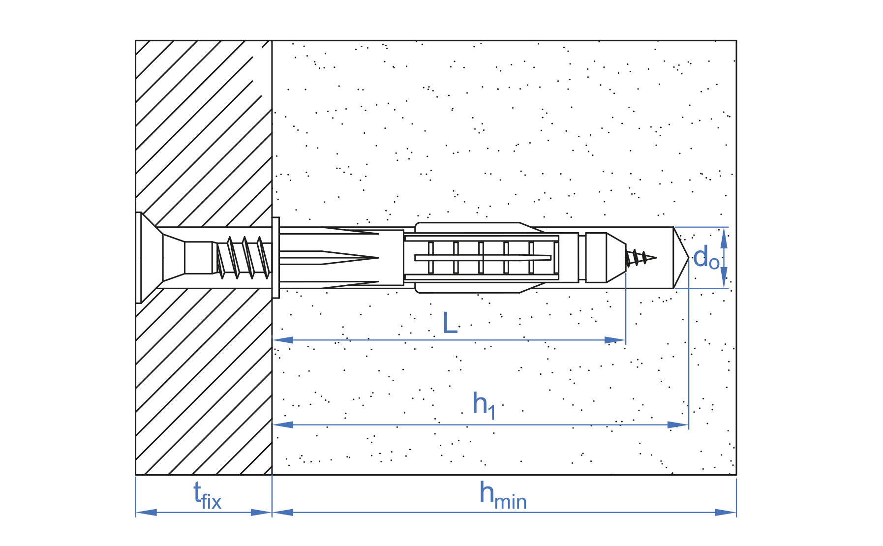 Medida: 8 x 45 Ø8 L: 42 Prof. mín. Anclaje: 42 Prof. mín. de taladro: 50 Ø Broca: 8 Espesor mín. material base: 70 M (”): 8 M x L: 8 x 42 Extracción hormigón no-fisurado: 12 Extracción ladrillo macizo: 5 Extracción ladrillo hueco: 4