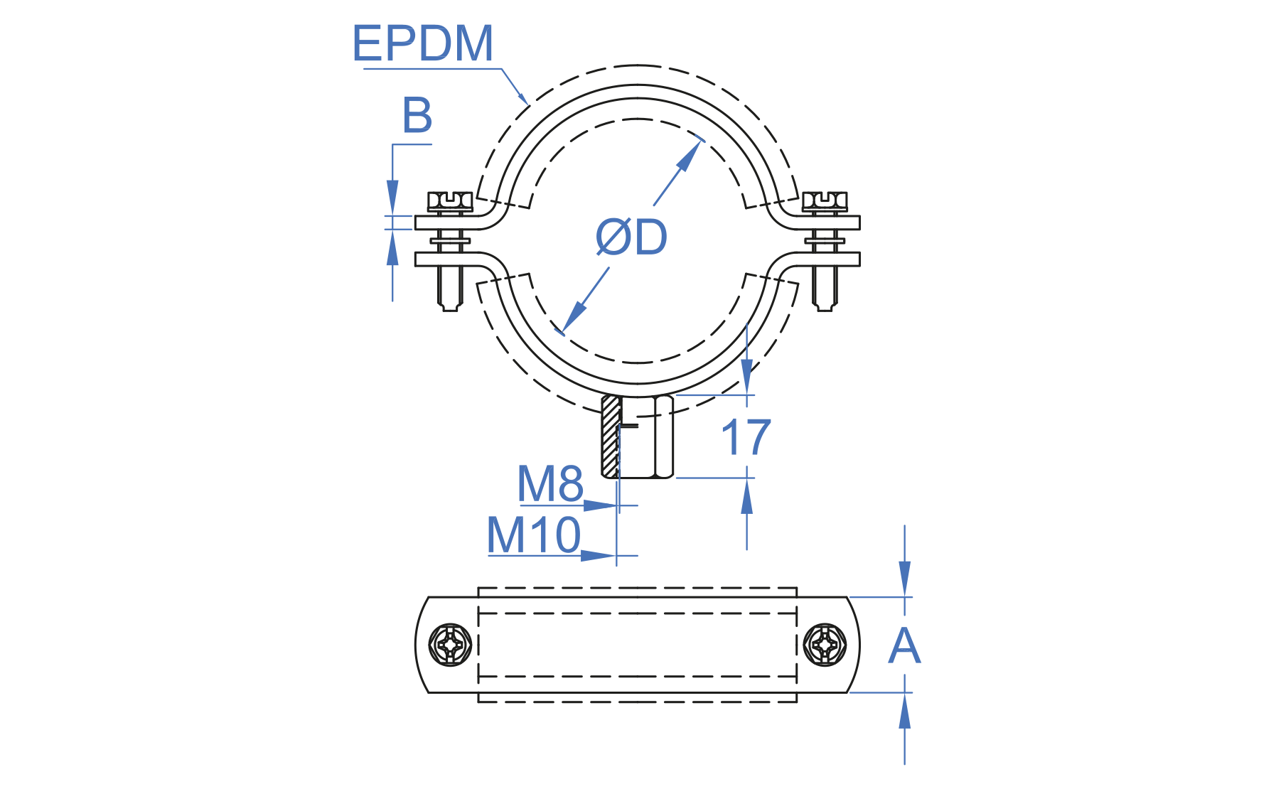AB-RI A2 [CP] Abrazadera isofónica reforzada M8 + M10. Inoxidable A2