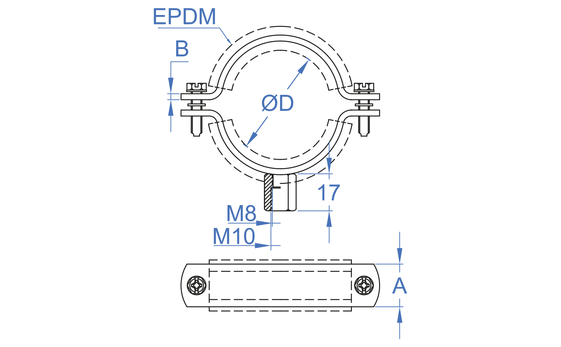 AB-RI A4 [CP] Abrazadera isofónica reforzada M8 + M10. Inoxidable A4