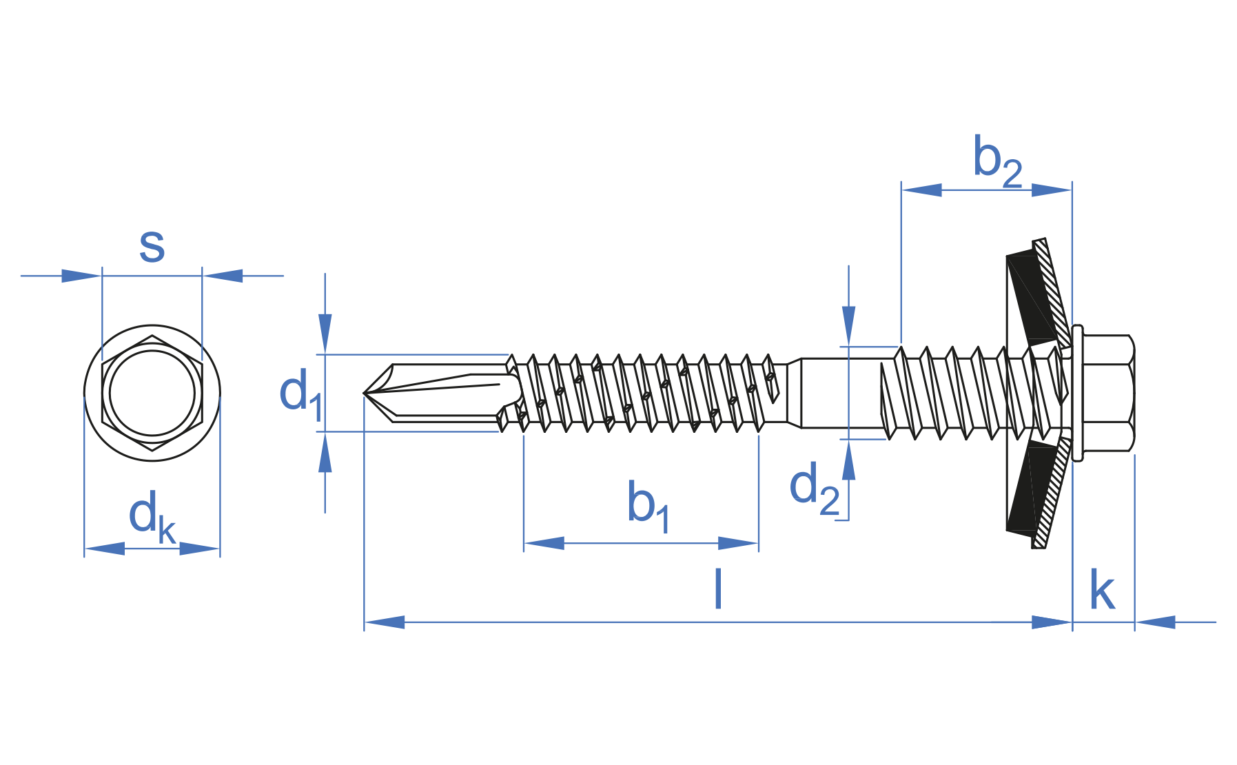 PS 3 + ARVUL [CP] Tornillo autotaladrante de cabeza hexagonal para panel sándwich. Punta broca estándar #3 con arandela vulcanizada de acero-EPDM. Zincado