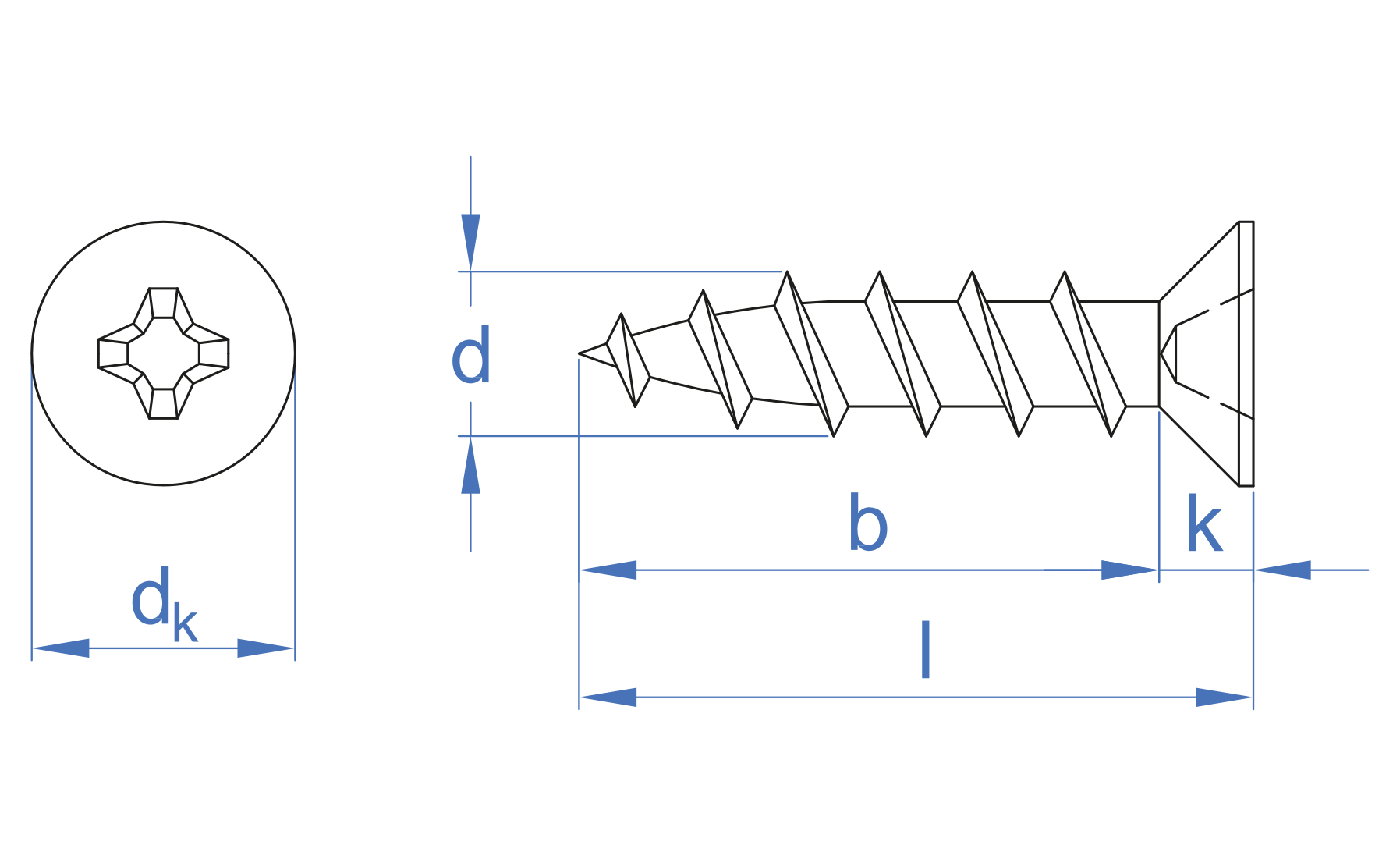 PVC-20 Z [CP] Tornillos para carpintería de PVC. Zincado. Diámetro de cabeza 7 mm