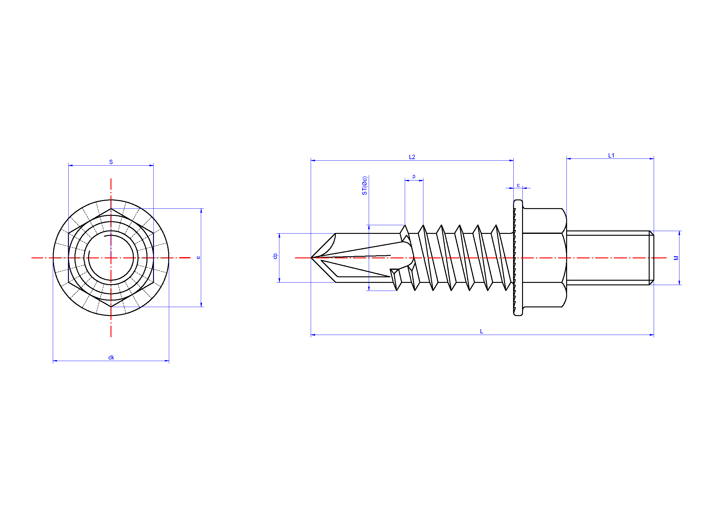 ABE-RM [CP] Tornillo punta broca con rosca macho y accesorios. Tornillo punta broca. Rosca macho
