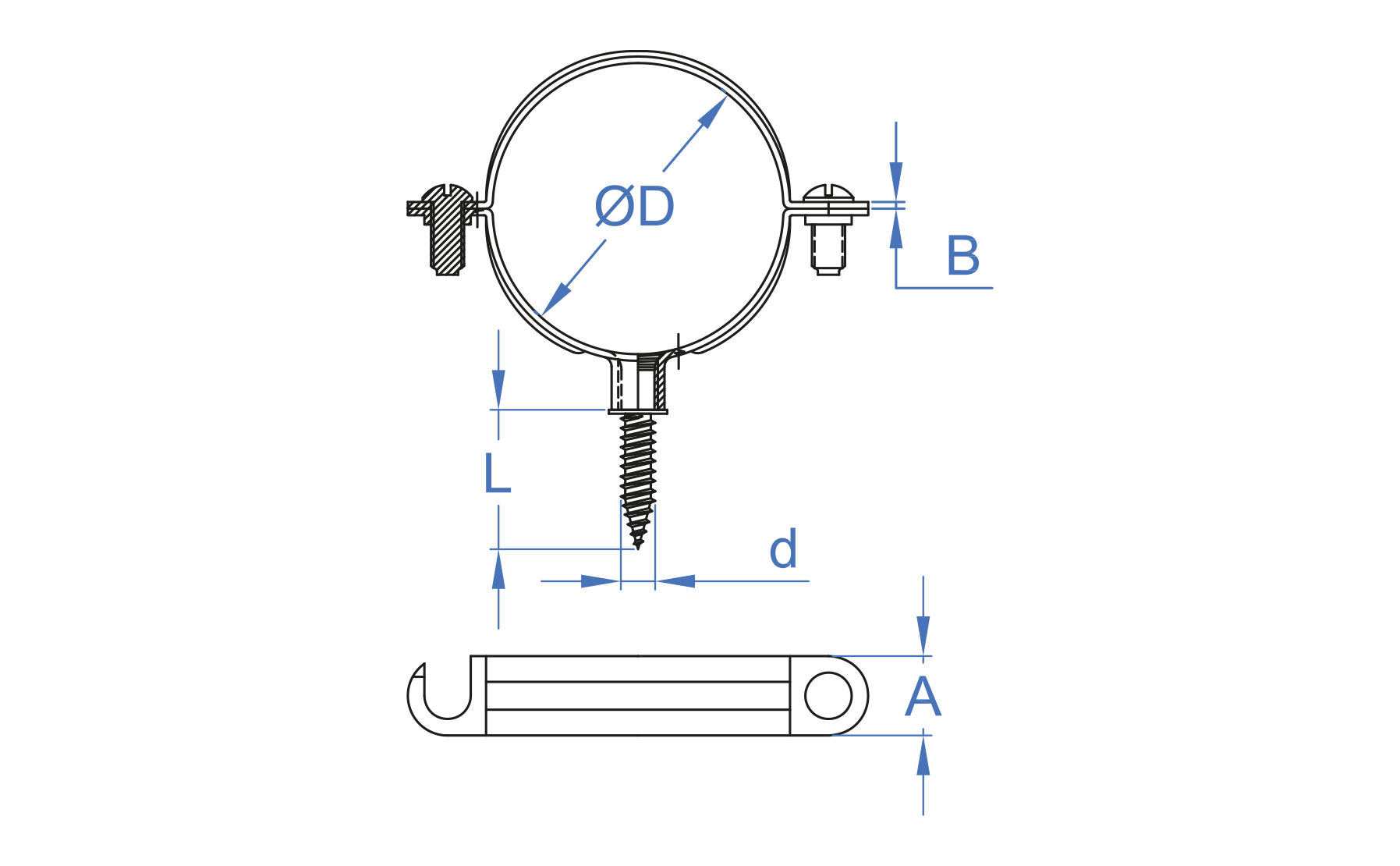 AB-GS [CP] Abrazadera gásmica negra M6 con tirafondo
