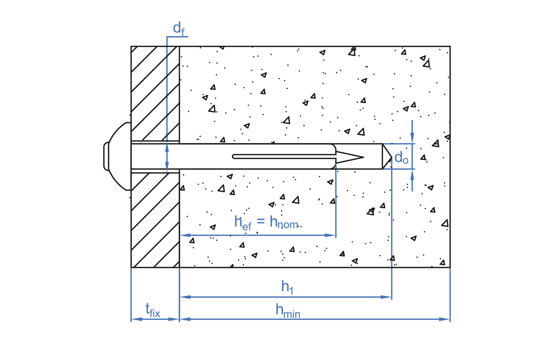 Medida: 5 x 22 Ø5 L: 22 Prof. mín. Anclaje: 15 Prof. mín. de taladro: 37 Ø Broca: 5 Ø Elemento a fijar: 6 Espesor mín. material base: 100 Espesor máx. a fijar: 7 M (”): 5 M x L: 5 x 22 Extracción hormigón no-fisurado: 44