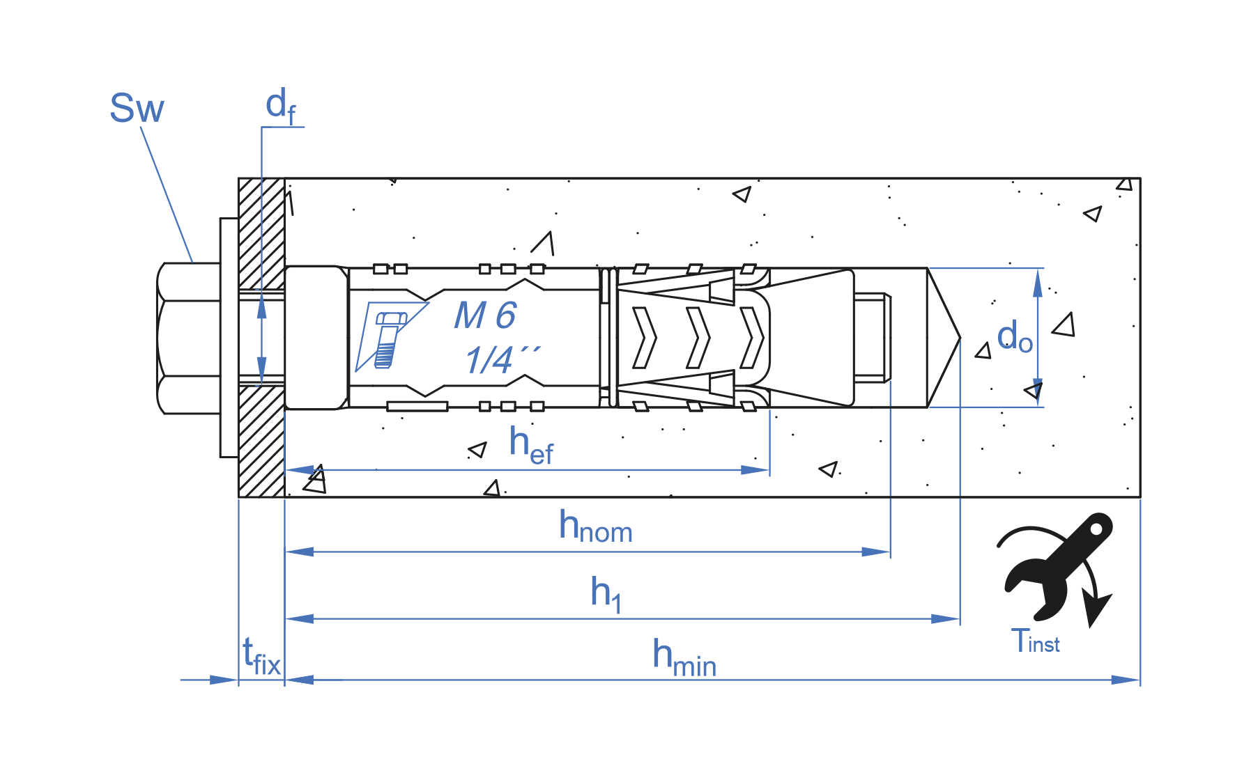 Medida: M6 x 48 Ø12 L: 48 Longitud cápsula: 48 Prof. mín. Anclaje: 48 Prof. mín. de taladro: 60 Profundidad efectiva: 41 Par de apriete (Nm): 7 Ø Broca: 12 Ø Elemento a fijar: 7 Espesor mín. material base: 100 Distancia min. entre ejes "B": 125 Distancia min. al borde "A": 62 M (”): M6 M x L: M6 x 48 Extracción hormigón no-fisurado: 513