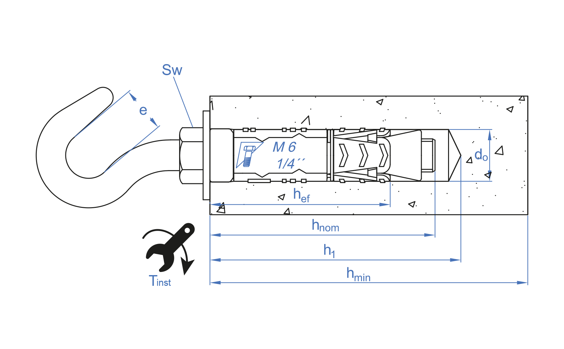 ZA-GF [CP] Anclaje de zamak para cargas medias-altas en materiales macizos o huecos. Gancho forjado