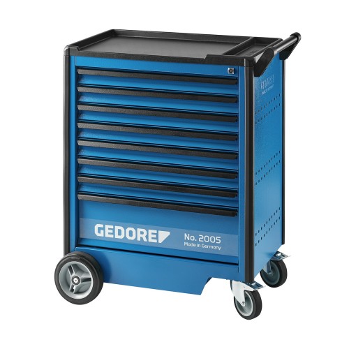 Cuerpo: Dimensiones: H 1020 x An 865 x P 605 mm. Superficie de trabajo de plástico ABS con 3 compartimentos para piezas pequeñas, Ágil y de fácil manejo gracias a su manillar ergonómico, Paredes laterales con orificios europeos de 10 x 38 mm para fijar ganchos y herramientas, Seguridad gracias a la protección del talón y de los bordes , Chapa de acero, resistente a la corrosión y a los arañazos, revestido de polvo, GEDORE azul, Cajones: Cierre centralizado con cerradura de cilindro, Cajones anchos (AN 640 x P 400 mm) con extracción total, extraíbles, Cada cajón está dotado de cierre de seguridad, manejable con una sola mano, Guías montadas sobre rodamientos de bolas, Se pueden equipar individualmente con divisores longitudinales y transversales (también disponibles de manera individual), Capacidad de carga por cajón 40 kg, cajón inferior 60 kg, Chapa de acero, resistente a la corrosión y a los arañazos, revestido de polvo, GEDORE azul, Chasis de alto rendimiento GEDORE: Capacidad de carga total 1000 kg (750 kg dinámico), 2 ruedas de alto rendimiento con rodamientos de rodillos GEDORE (ruedas fijas Ø 200 mm), 2 ruedas de rodadura ligera GEDORE (ruedas giratorias Ø 125 mm), ambas con freno total, El diseño especial del eje de GEDORE posibilita también en caso de carga máxima: marcha fluida, maniobrabilidad y seguimiento de rodadura, Accesorios: Divisores longitudinales (DL) y transversales (DT) de acero galvanizado (también disponibles de manera individual), Opciones: Se puede equipar de manera óptima con los módulos de herramientas de GEDORE (n.º 1500 ES/1500 CT o 2005 CT), Se puede ampliar con los cofres de herramientas, paneles traseros y soportes de herramientas de GEDORE, Otras combinaciones de cajones a demanda, Colores y modelos especiales a demanda, Entrega sin herramientas y accesorios