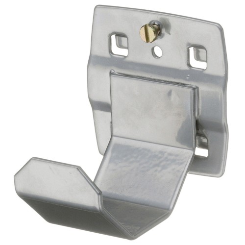 Adecuado para chapas perforadas con agujeros cuadrados de 10 x 38 mm. Gancho de 35 mm de ancho, recubierto de polvo, Entrega sin decoración