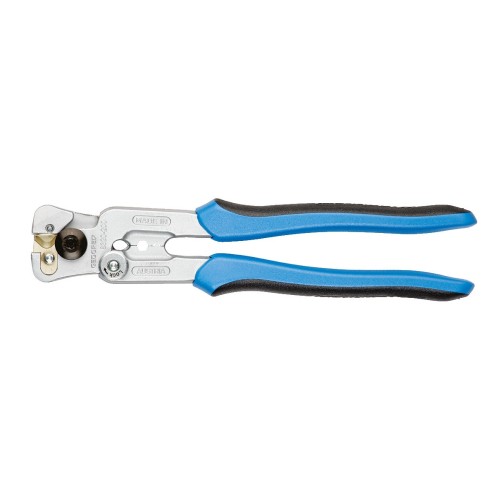 Modelo: Placas de corte fácilmente reemplazables, Insertos de corte hechos de acero de alta velocidad metalúrgico en polvo (HSS). Fabricado mediante el proceso MIM (Metal Injection Molding), Una vida útil extremadamente larga comparada con los cortadores de cable tradicionales, Corte extremadamente limpio que evita de manera segura que los cables de acero se destrencen, Consejo: Con un tamaño medio de mano de hasta aprox. 5 mm Ø, se puede operar con una sola maNo. Por lo tanto, es óptimo como cortador de mortajas en una emergencia en el mar. Hornear/cortar: Filos de corte curvos especiales, Los insertos pueden ser fácilmente reemplazados cuando hay signos de desgaste, Dureza del filo 62 - 65 HRC, Se requiere poco esfuerzo debido a la óptima geometría de corte, 2 perfiles de prensa integrados para las tapas de los extremos del cable Bowden y las tapas de la cubierta del cable Bowden, capacidad de corte: Cables de hasta 1800 N / mm² con Ø 6 mm máx. (P. Ej. Cables de acero inoxidable, cables con cables de acero y textiles, cables Bowden, cubiertas), Alambre hasta 750 N/mm² con un máximo de 4 mm Ø (p.ej. clavos/pernos de alambre, tornillos, pernos, colgadores de techo), Cables de cobre y aluminio de uno o varios hilos con un máximo de 10 mm², Porros: Articulación ajustable para una guía de inserción precisa, Bloqueo contra la apertura involuntaria, muslos/mangos: Versión JC = con mangos de 2 componentes, Material/acabado: alicates cuerpo brillante forjado en gota, Cromada
