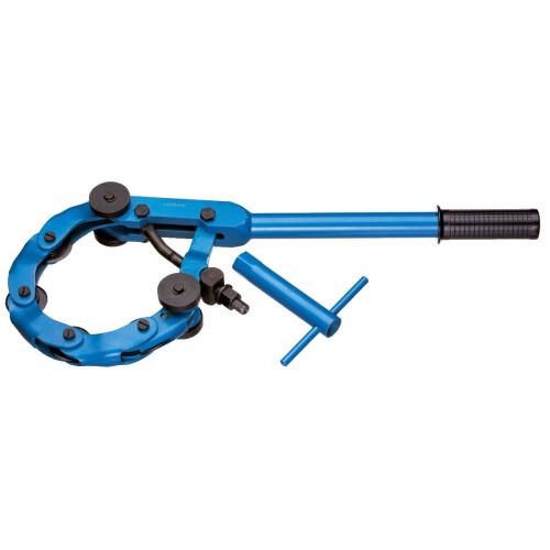 Requiere poco espacio debido a su funcionamiento con efecto carraca, En la versión estándar, adecuada para tubos de 85 a 175 mm de diámetro, Ampliable para tubos hasta un máximo de 330 mm de diámetro exterior, Pintado de azul