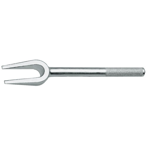 Para la liberación rápida de cabezas de barras y bielas de dirección y otras piezas de la dirección, También es adecuado para el desmontaje de amortiguadores y otros trabajos de separación y desmantelamiento, La horquilla de separación se puede colocar en los espacios más estrechos, Las partes a separar se separan con golpes de martillo en el extremo del mango