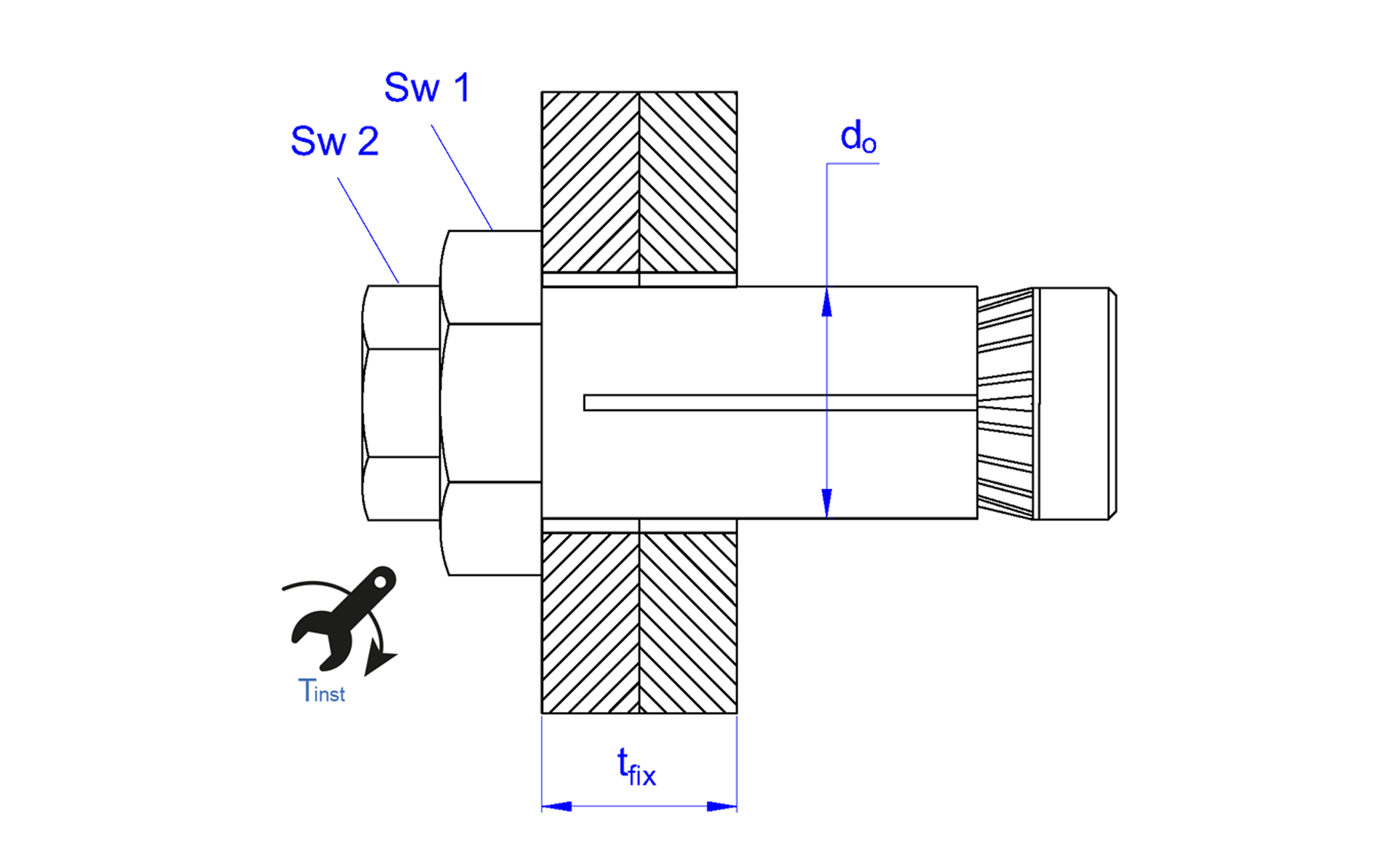 Llave de instalación: SW 1= 17 / SW 2 = 10