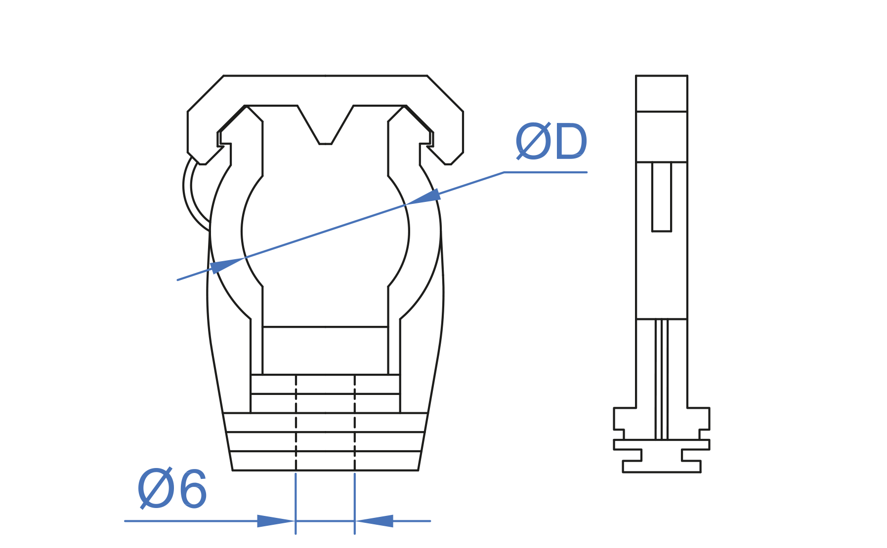 AB-GU [CP] Abrazadera guía simple con pre-rosca M6. Abrazadera guía gris simple con pre-rosca M6