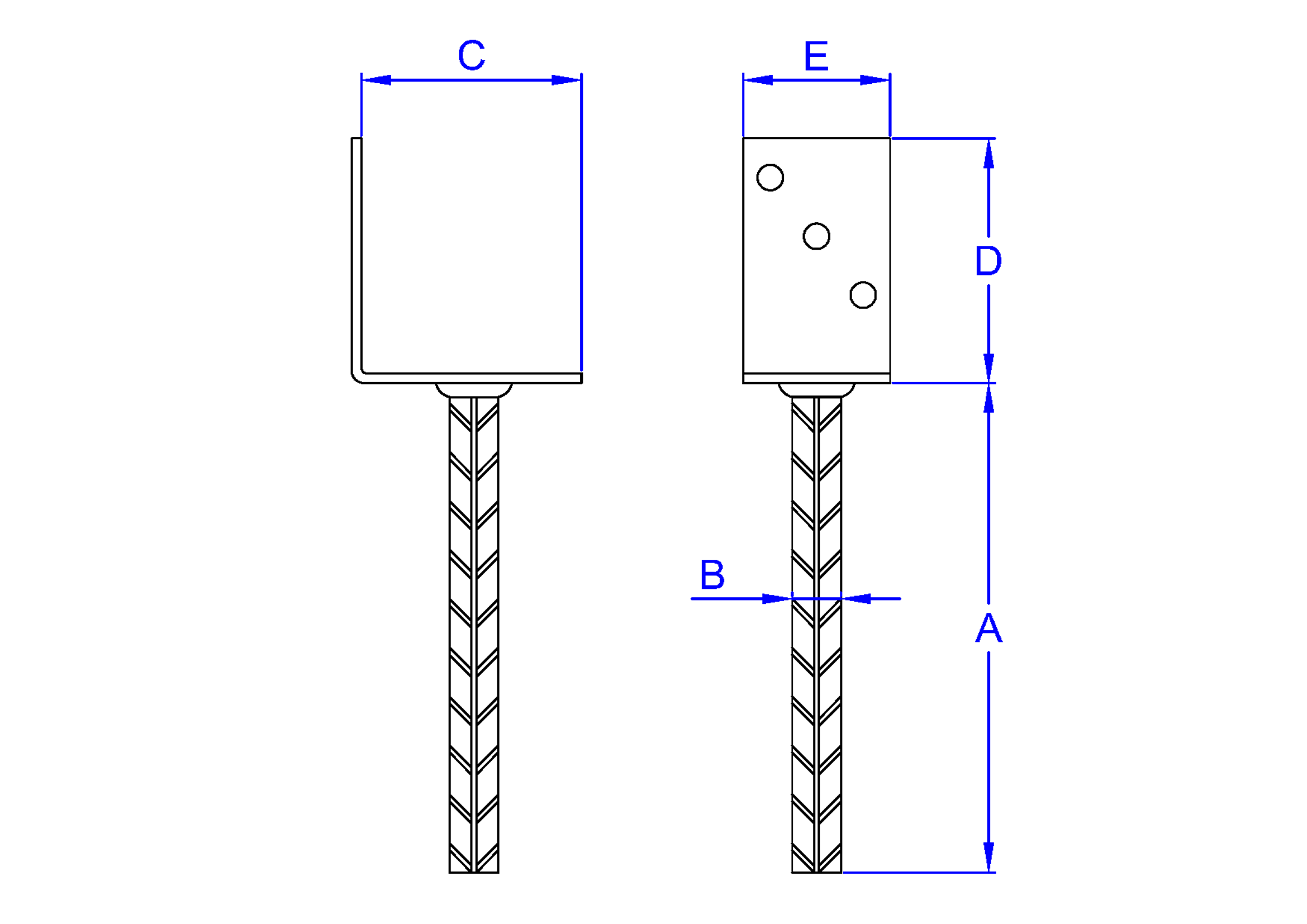 INDEX® A Perfect Fixing AP-FL [CP] Anclajes para postes. En "L", soldado y con pata de acero corrugado