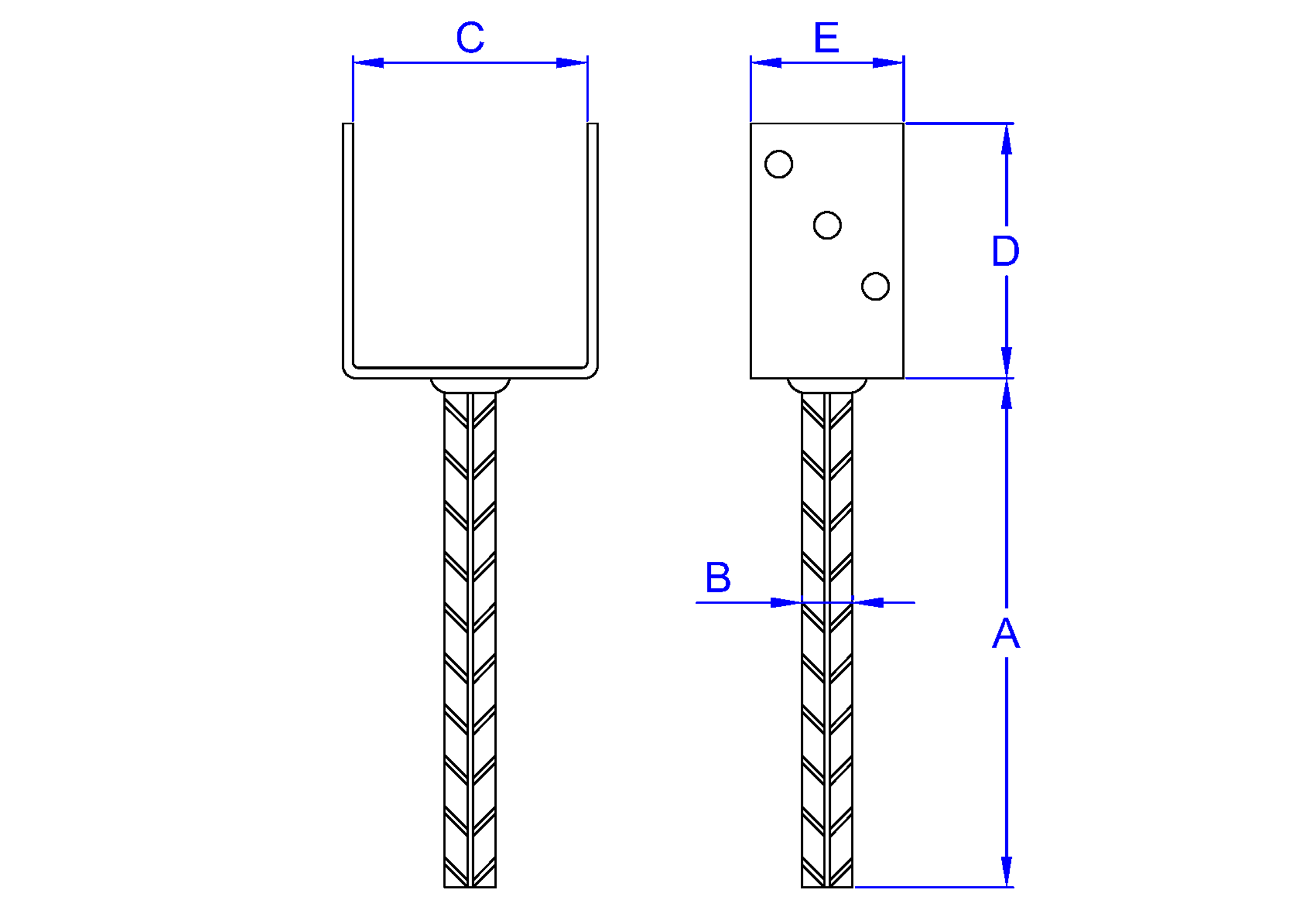 AP-PT [CP] Anclajes para postes. En "U" soldado con pata de acero corrugada