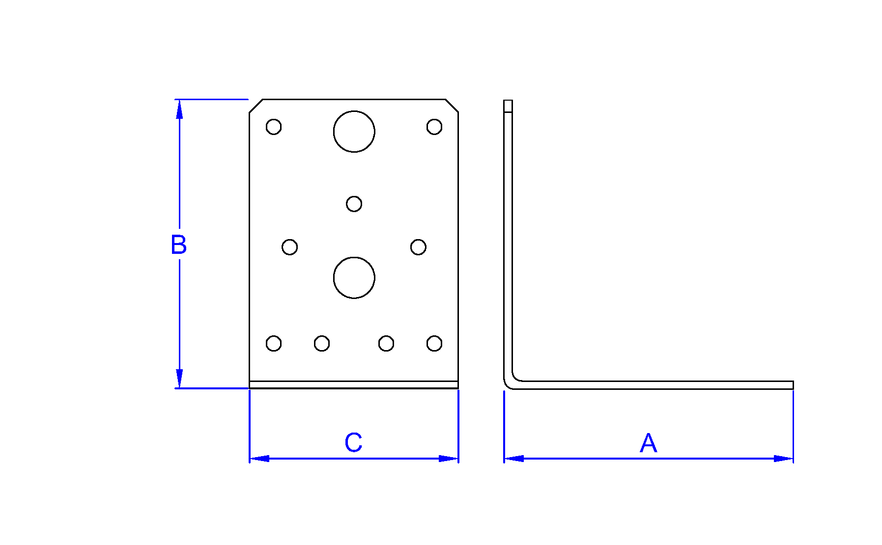 SC-ED [CP] Escuadras para unión de madera. De ensamblaje, perforada con orificios desiguales