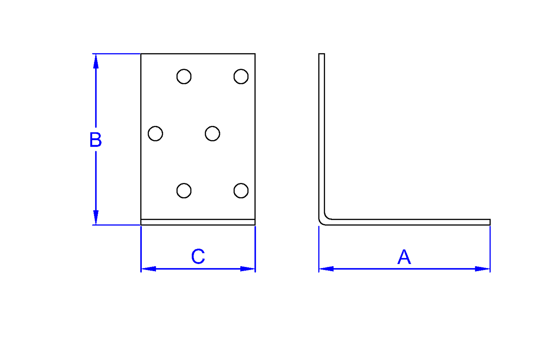 SC-EI [CP] Escuadras para unión de madera. De ensamblaje, perforada con orificios iguales