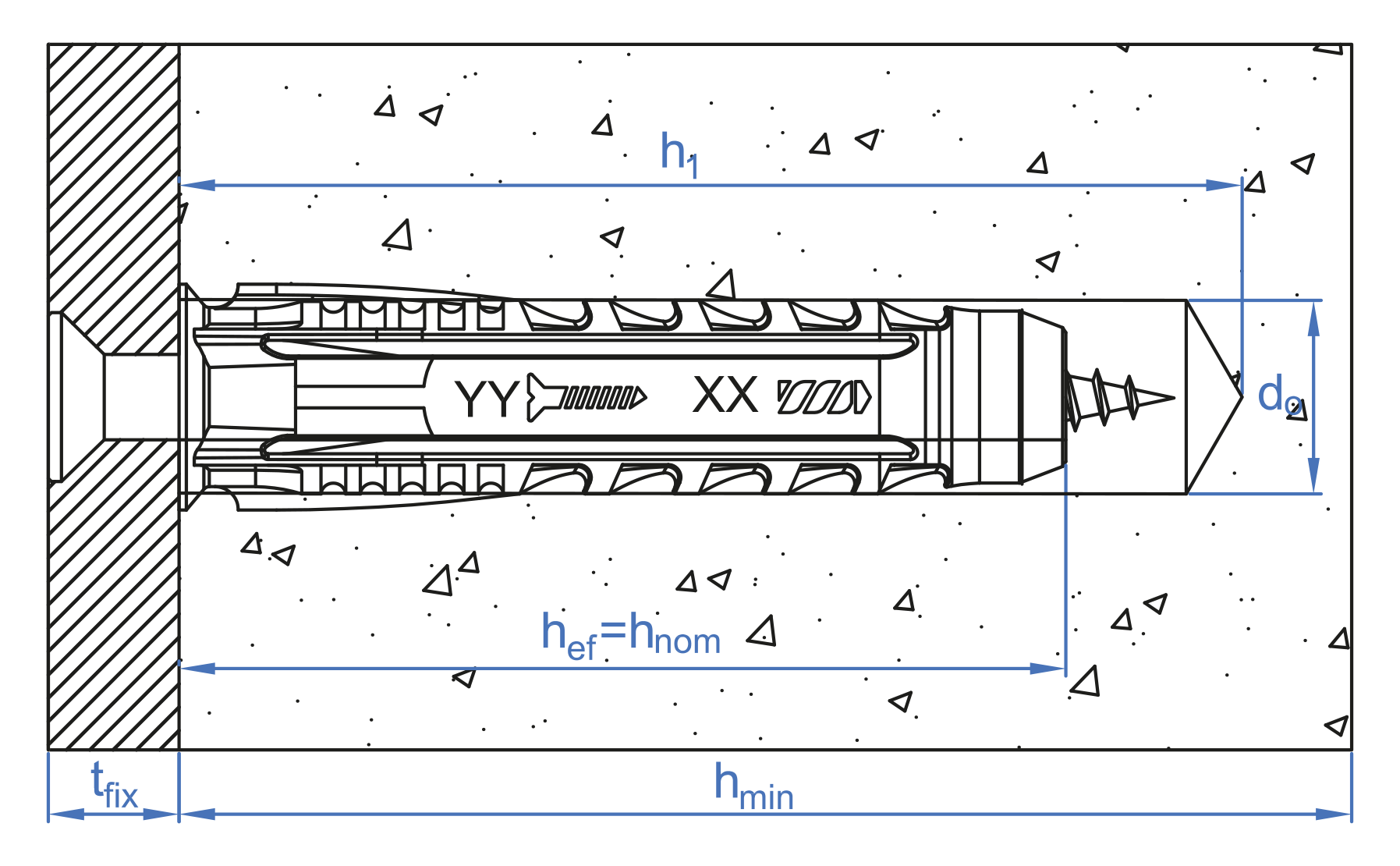 Prof. mín. Anclaje: 60