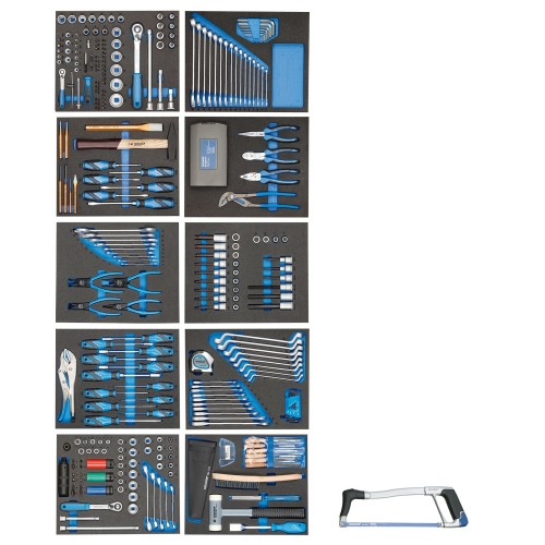 Juego de llaves de vaso 1/4"+1/2" en módulo CT No. TS CT2-D19-D20, 81 piezas;Juego de llaves de boca y anillo en módulo CT No. TS CT2-7, 24 piezas;Juego de herramientas en módulo CT No. TS CT2-2154SK-119, 14 piezas;Juego de alicates en módulo CT No. TS CT2-142, 28 piezas;Juego de herramientas en módulo 2/4 CT No. TS CT2-6-8000, 15 piezas;Juego de destornilladores 1/2" en módulo 2/4 CT No. TS CT2-ITX19, 28 piezas;Juego de herramientas en módulo 2/4 CT No. TS CT2-2133-2163TX, 13 piezas;Juego de llaves en módulo 2/4 CT No. TS CT2-7R-2, 28 piezas;Juego de herramientas en módulo 2/4 CT No. TS CT2-D30, 59 piezas;Juego de herramientas en módulo 2/4 CT No. TS CT2-710, 17 piezas;Sierra de arco No. 407;+ Banco de trabajo rodante No. 1504 XL, 1,25 m de ancho